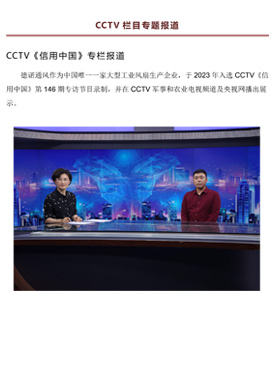 德诺通风是唯一入围央视《信用中国》栏目录制专题片的大型工业风扇生产企业。